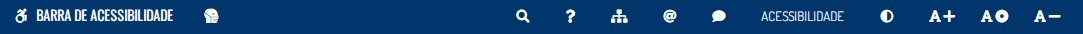 A imagem acima ilustra a BARRA DE ACESSIBILIDADE disponibilizada NO TOPO de todas as páginas do nosso portal. Essa facilidade permite que o internauta, a partir de qualquer página, possa ter acesso a páginas "especiais" e ainda traz controles de visualização. Vamos identificar a barra, da esquerda para a direita: